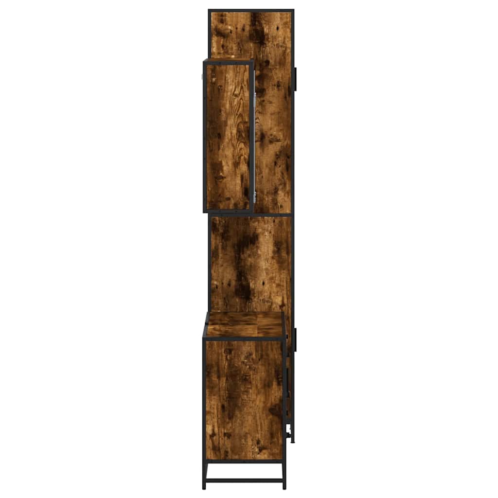 Set mobilier de baie, 3 piese, stejar fumuriu, lemn prelucrat
