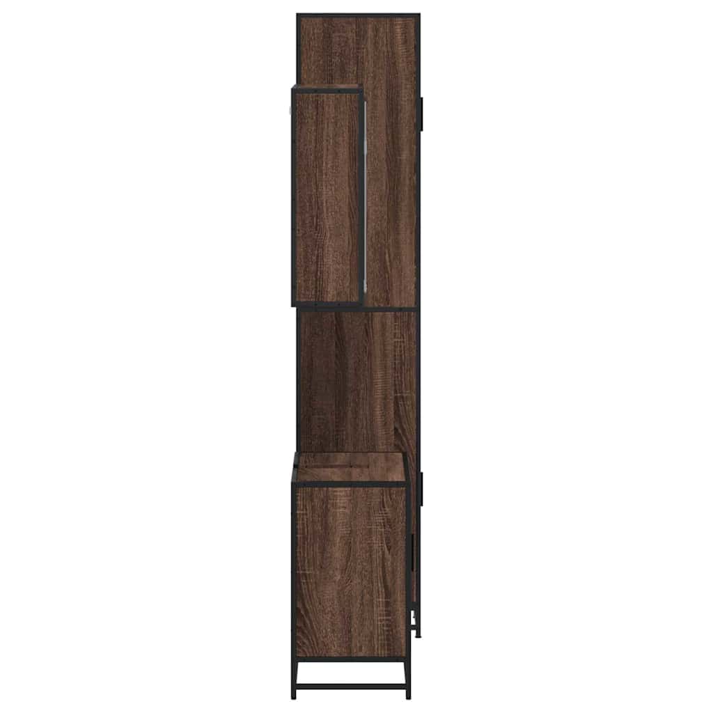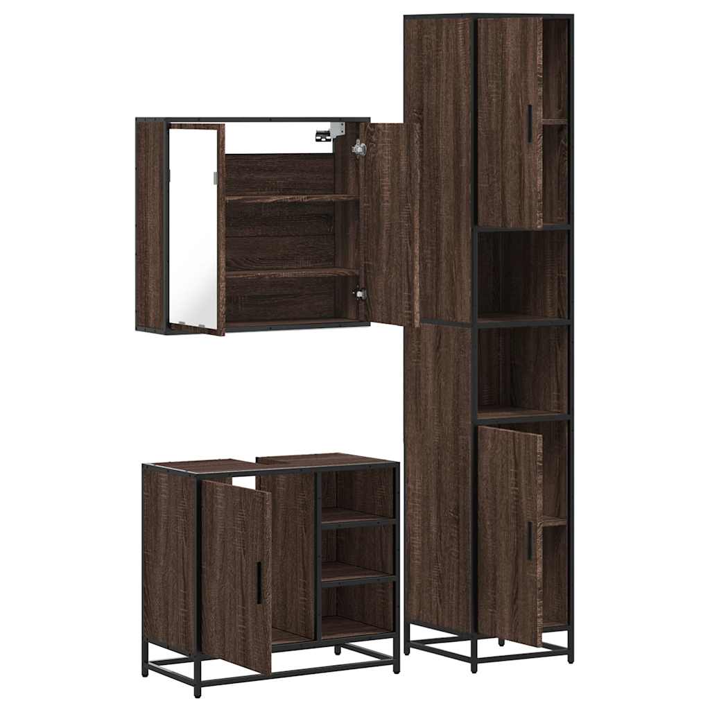 Set mobilier de baie, 3 piese, stejar maro, lemn prelucrat