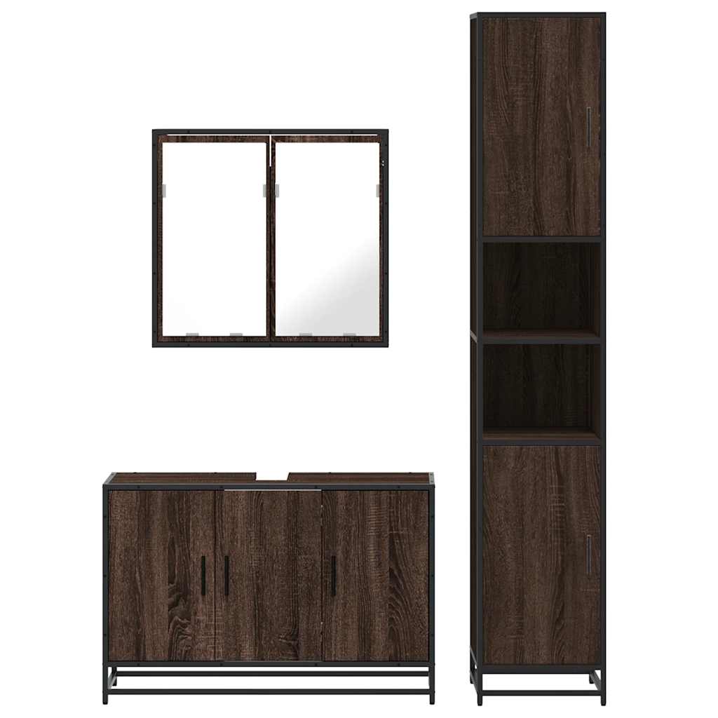 Set mobilier de baie, 3 piese, stejar maro, lemn prelucrat