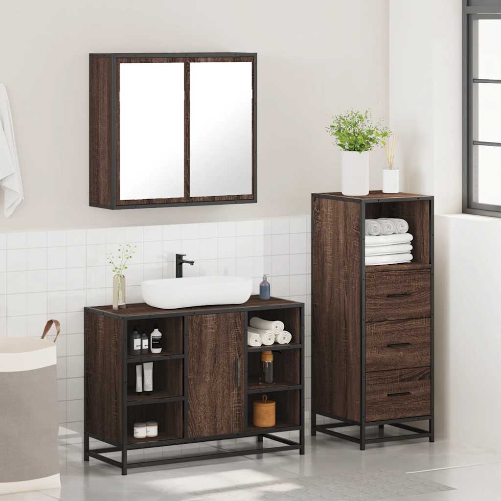 Set mobilier de baie, 3 piese, stejar maro, lemn prelucrat