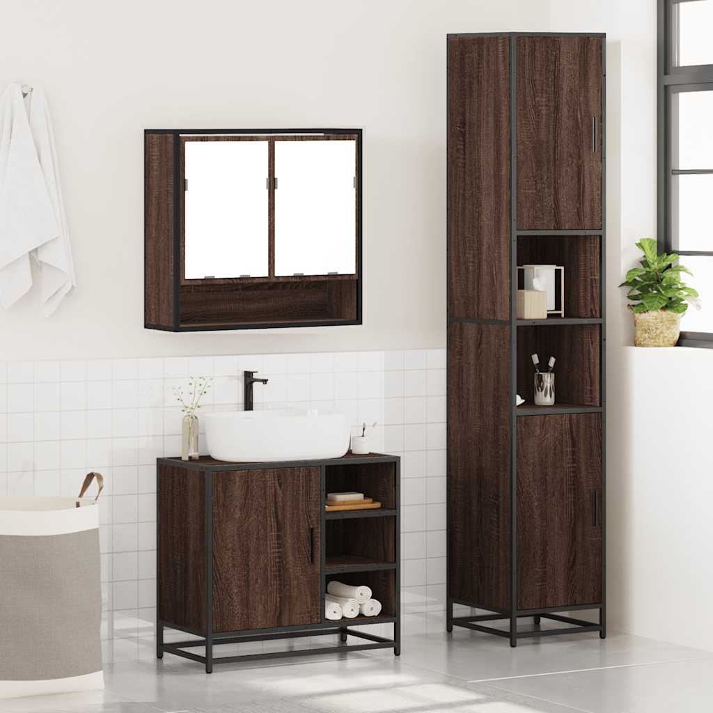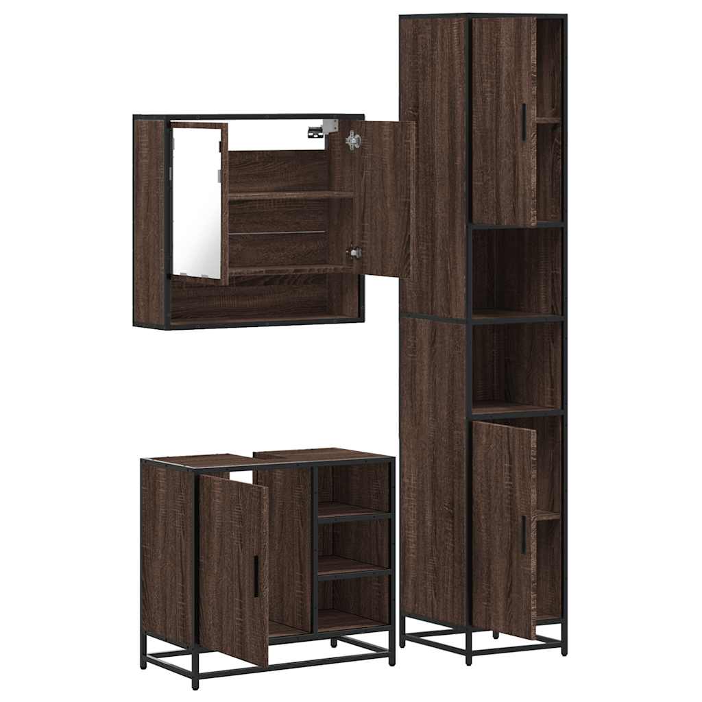 Set mobilier de baie, 3 piese, stejar maro, lemn prelucrat
