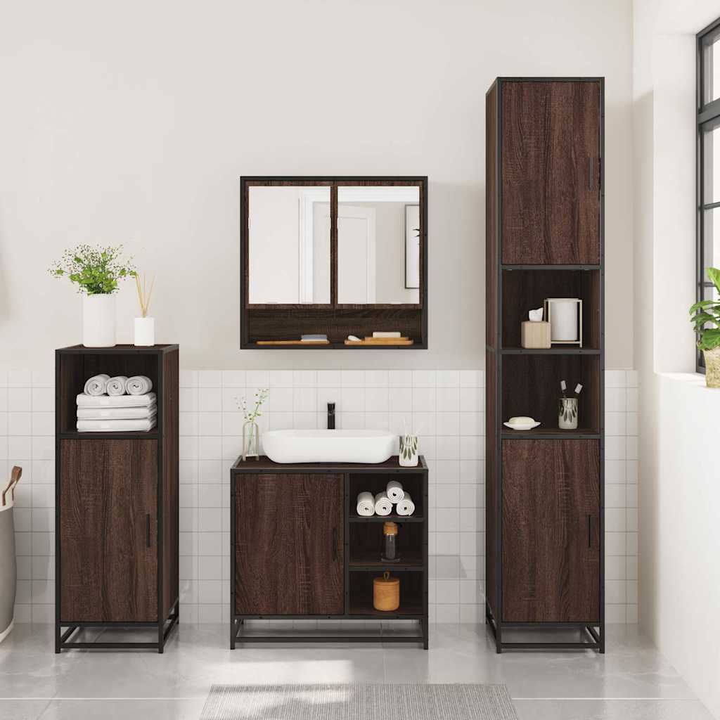Set mobilier de baie, 3 piese, stejar maro, lemn prelucrat