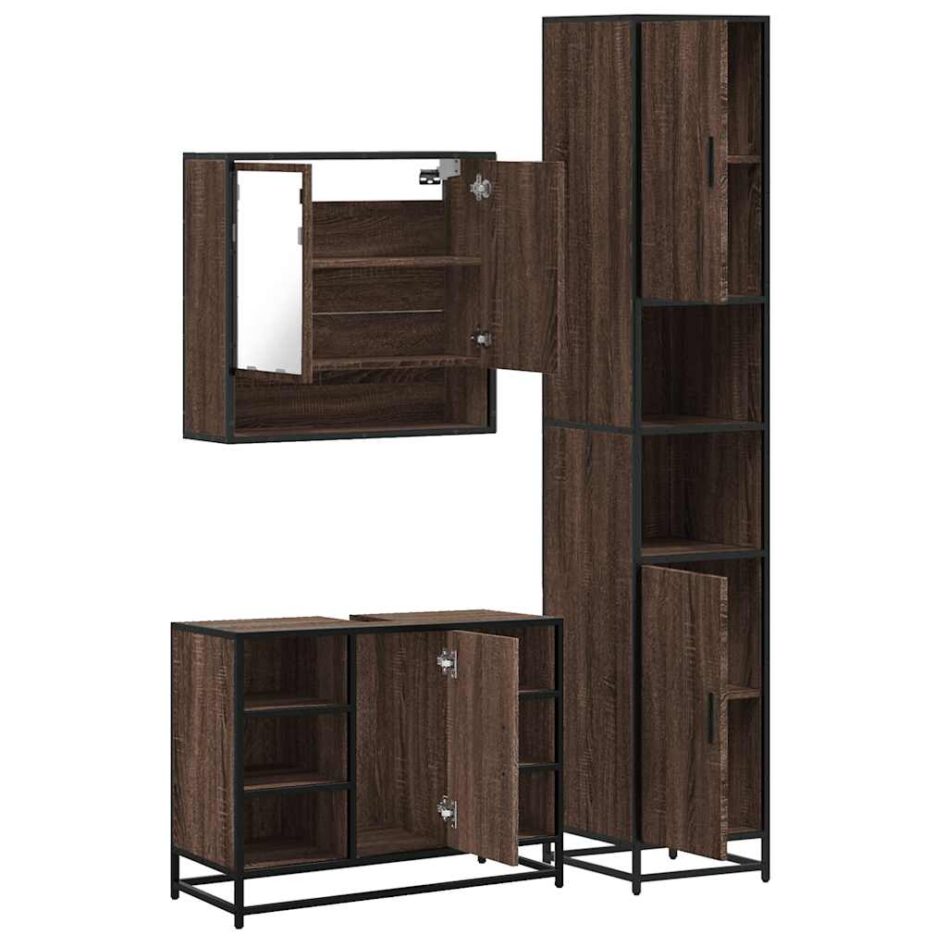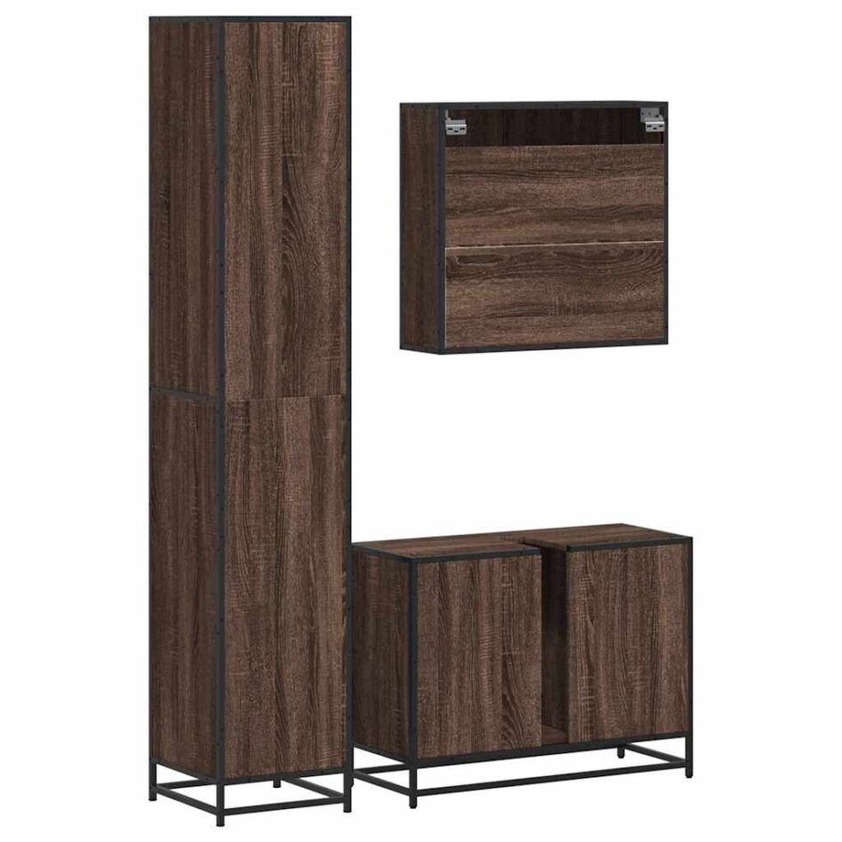 Set mobilier de baie, 3 piese, stejar maro, lemn prelucrat