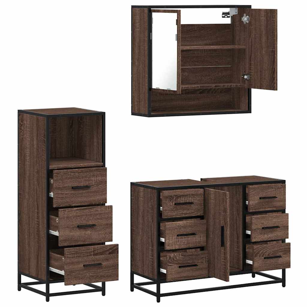 Set mobilier de baie, 3 piese, stejar maro, lemn prelucrat