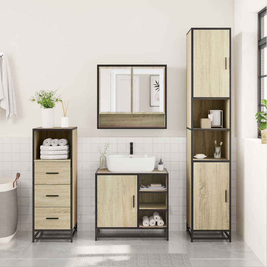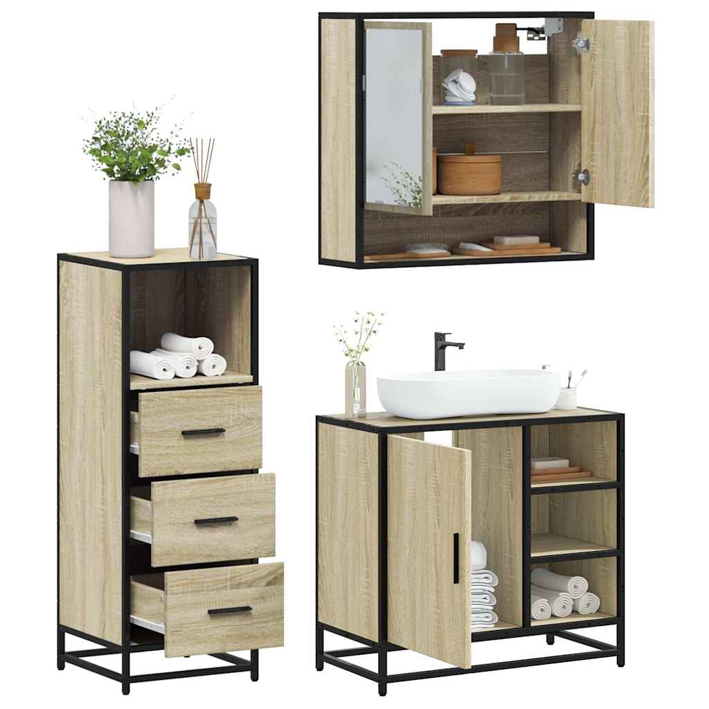 Set mobilier de baie, 3 piese, stejar sonoma, lemn prelucrat