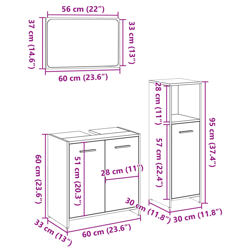 Set mobilier de baie, 3 piese, stejar sonoma, lemn prelucrat