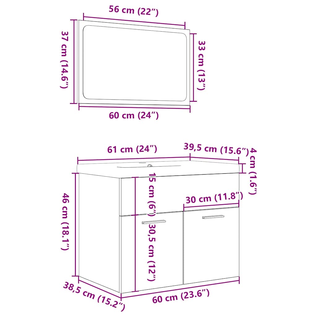 - Dimensiuni dulap chiuvetă: 60 x 38,5 x 46 cm (l x ad. x î)