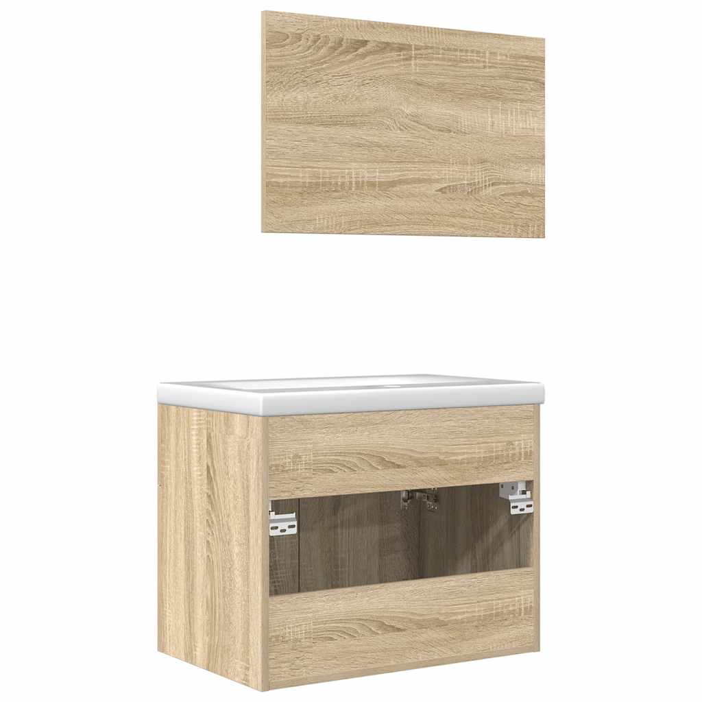 Set mobilier de baie, 3 piese, stejar sonoma, lemn prelucrat