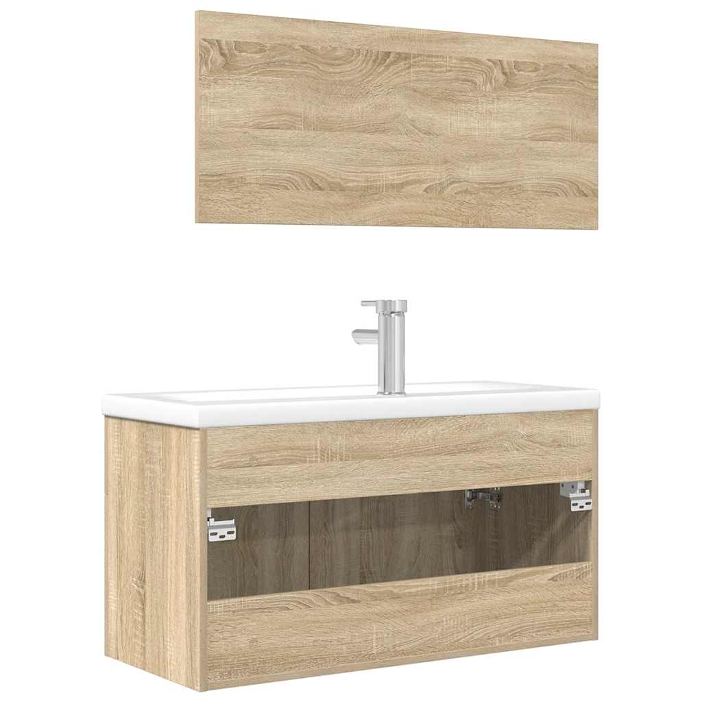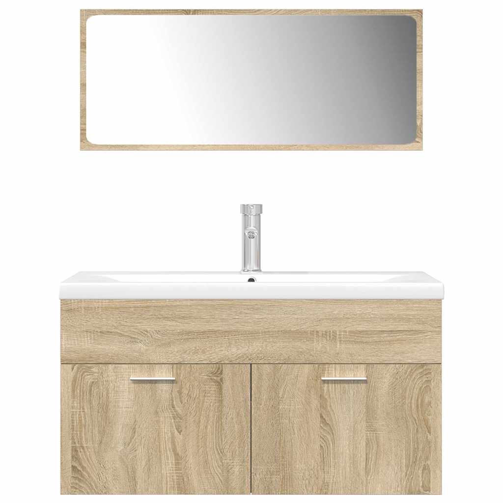 Set mobilier de baie, 3 piese, stejar sonoma, lemn prelucrat