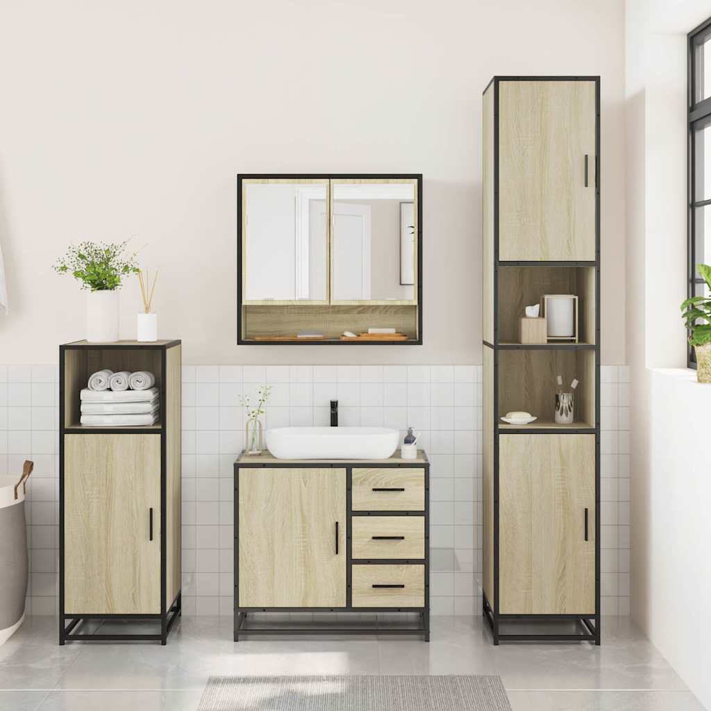 Set mobilier de baie, 3 piese, stejar sonoma, lemn prelucrat