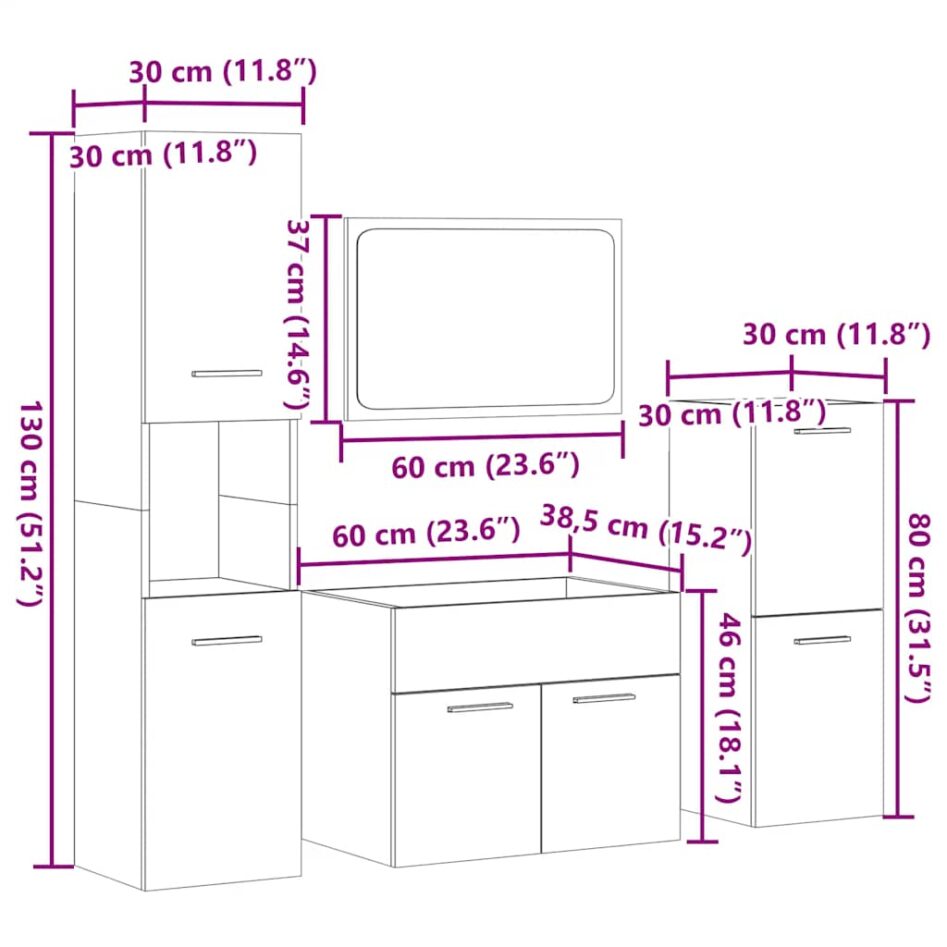 - 1 x Dulap de baie (S): 30 x 30 x 80 cm (L x A x A)