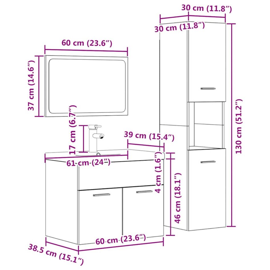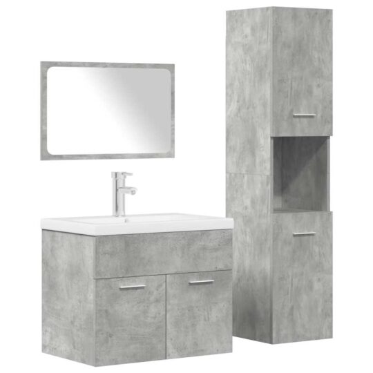 Set mobilier de baie, 4 piese, gri beton, lemn compozit