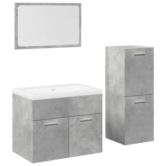 Set mobilier de baie, 4 piese, gri beton, lemn compozit