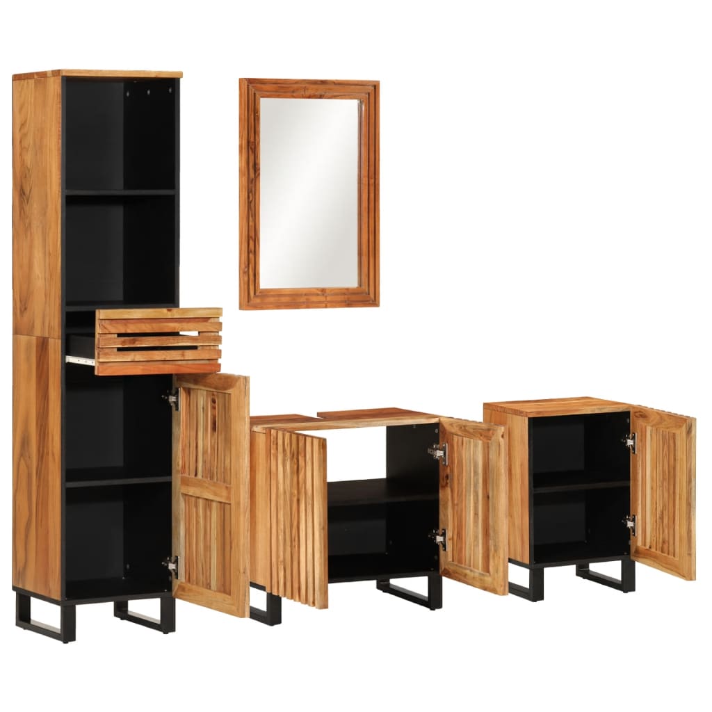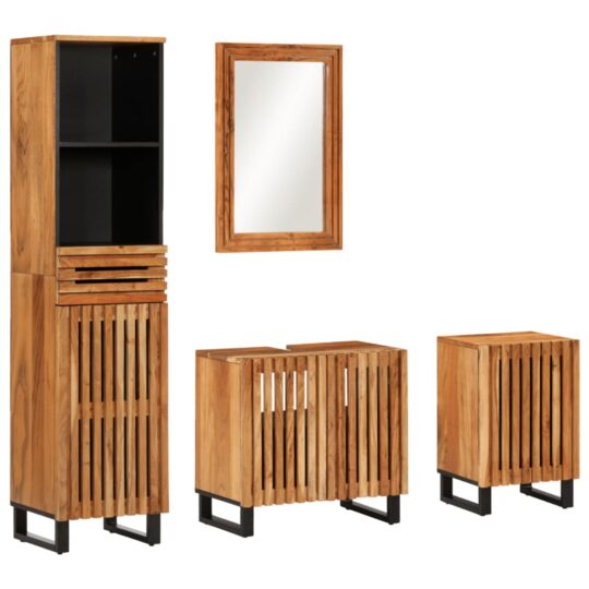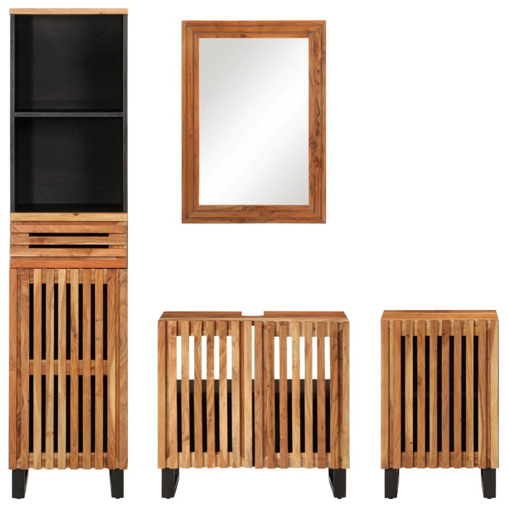 Set mobilier de baie, 4 piese, lemn masiv de acacia