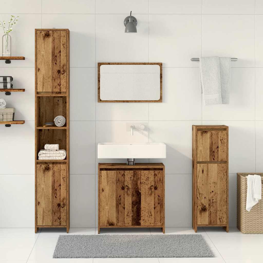 Set mobilier de baie, 4 piese, lemn vechi, lemn prelucrat