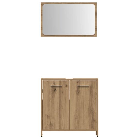 Set mobilier de baie, 4 piese, stejar artizanal, lemn prelucrat