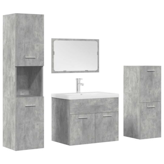 Set mobilier de baie, 5 piese, gri beton, lemn prelucrat