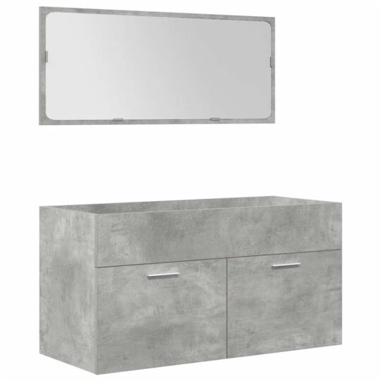 Set mobilier de baie, 5 piese, gri beton, lemn prelucrat
