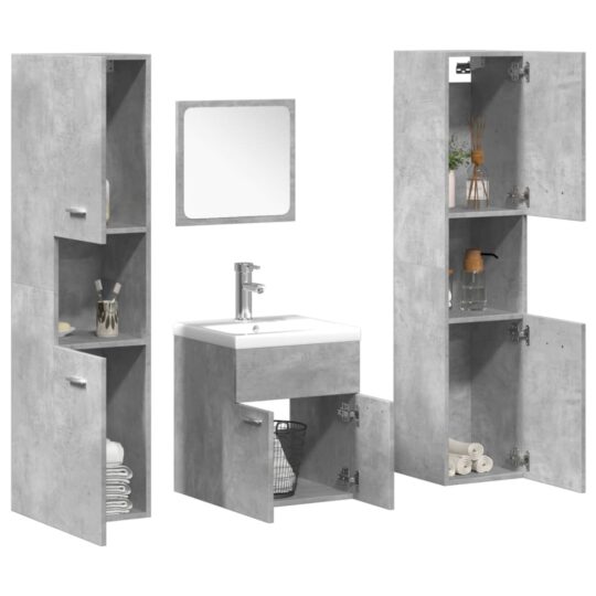 Set mobilier de baie, 5 piese, gri beton, lemn prelucrat