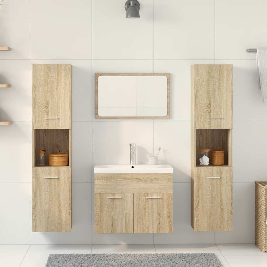 Set mobilier de baie, 5 piese, stejar sonoma, lemn prelucrat