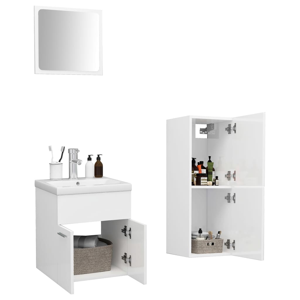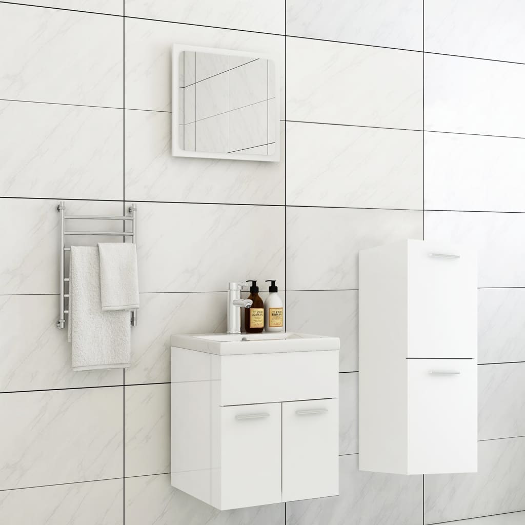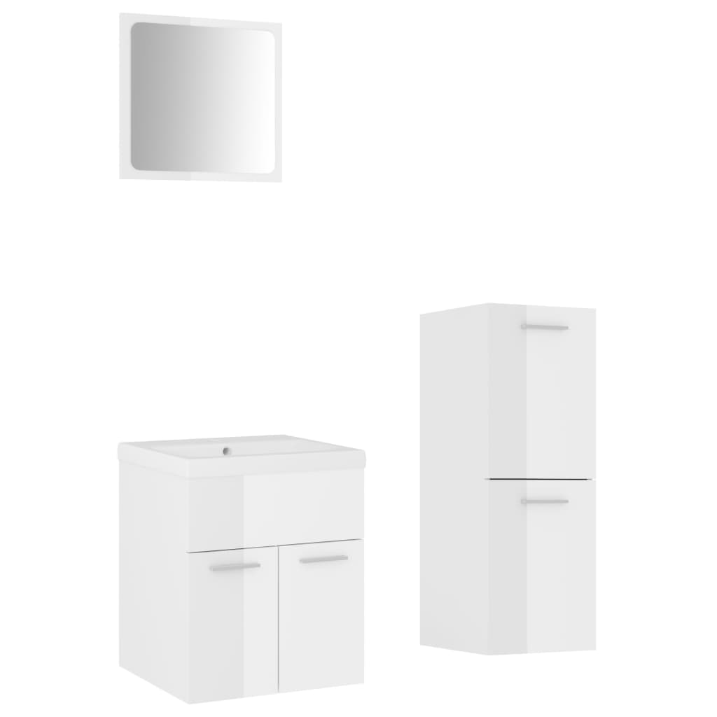 Set mobilier de baie, alb extralucios, lemn prelucrat