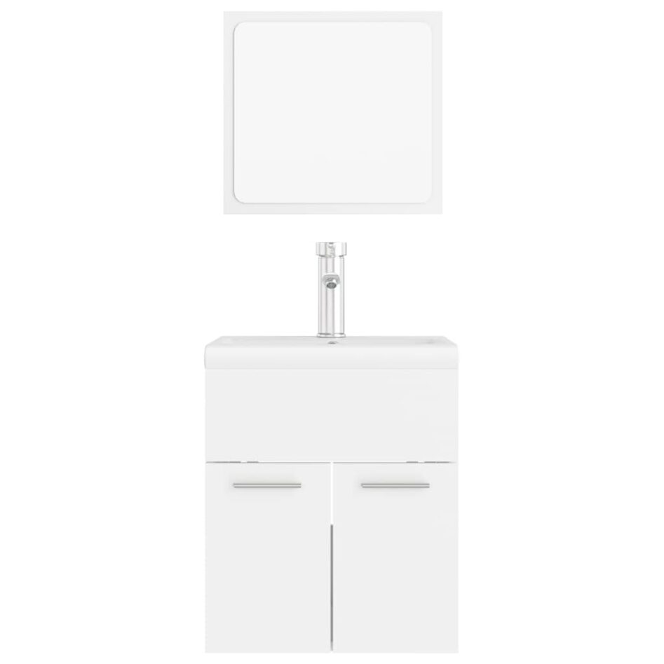 Acest set elegant de mobilier de baie, care constă dintr-un dulap pentru chiuvetă, o chiuvetă încorporată și o oglindă, se potrivește perfect pentru baia sau toaleta dvs. având un aspect deosebit și îngrijit.