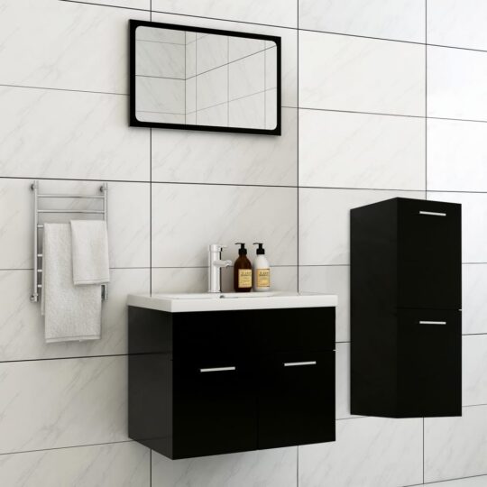 Set mobilier de baie, negru, lemn prelucrat