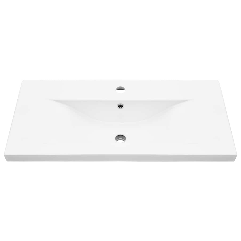 Acest set elegant de mobilier de baie, care constă dintr-un dulap pentru chiuvetă, o chiuvetă încorporată și o oglindă, se potrivește perfect pentru baia sau toaleta dvs. având un aspect deosebit și îngrijit.