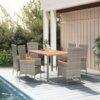 - Material: Poliratan, oțel, lemn masiv de acacia cu finisaj în ulei