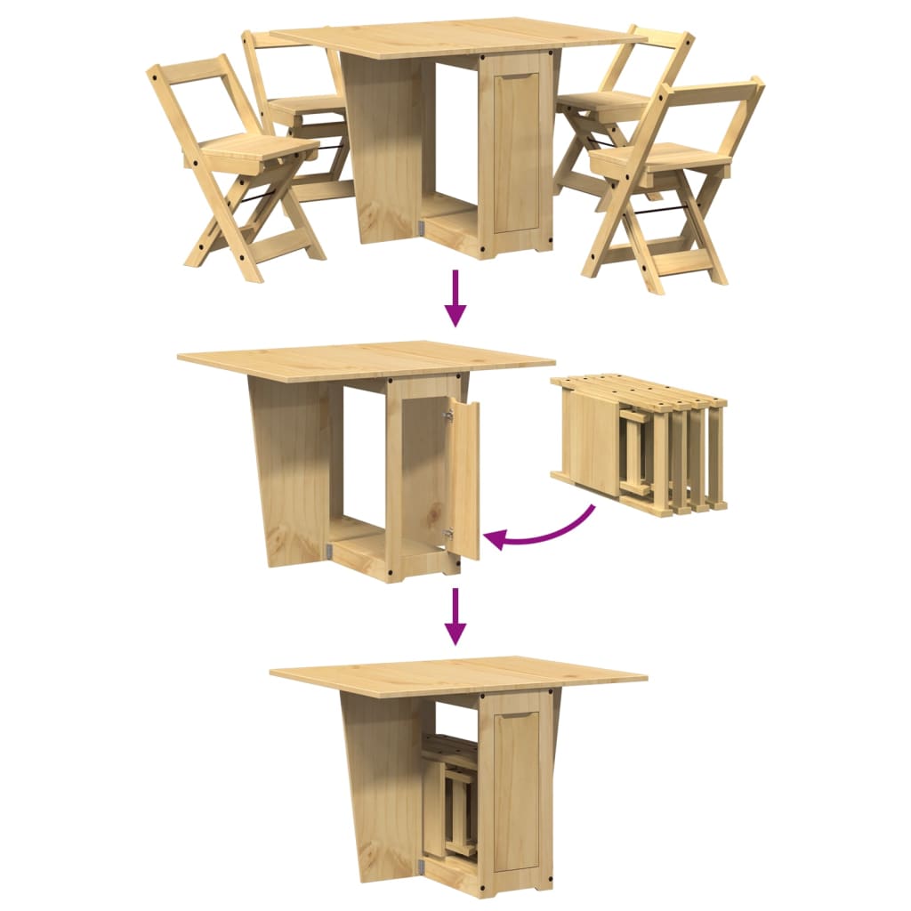 Set mobilier tip fluture Corona, pliabil 5 piese maro lemn pin