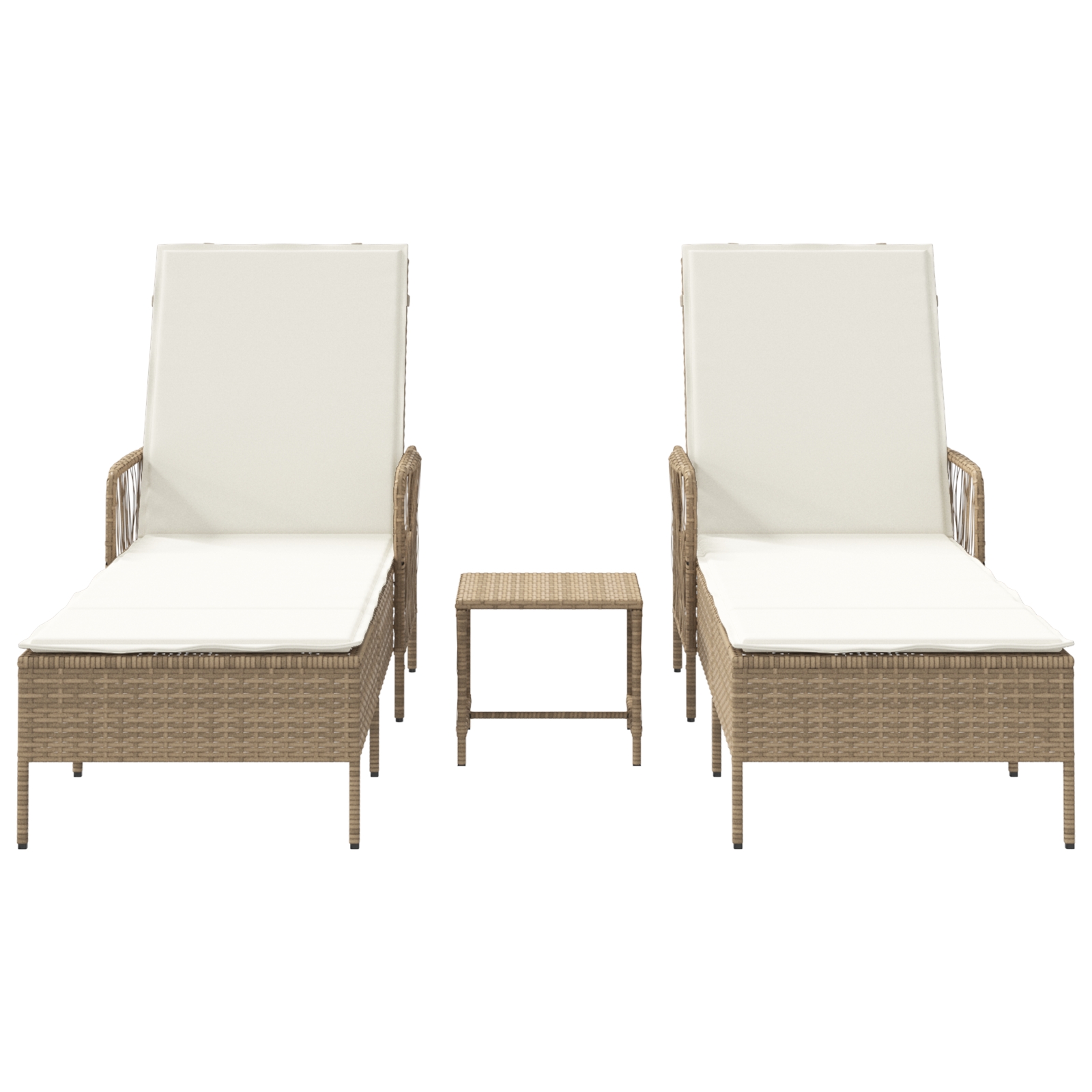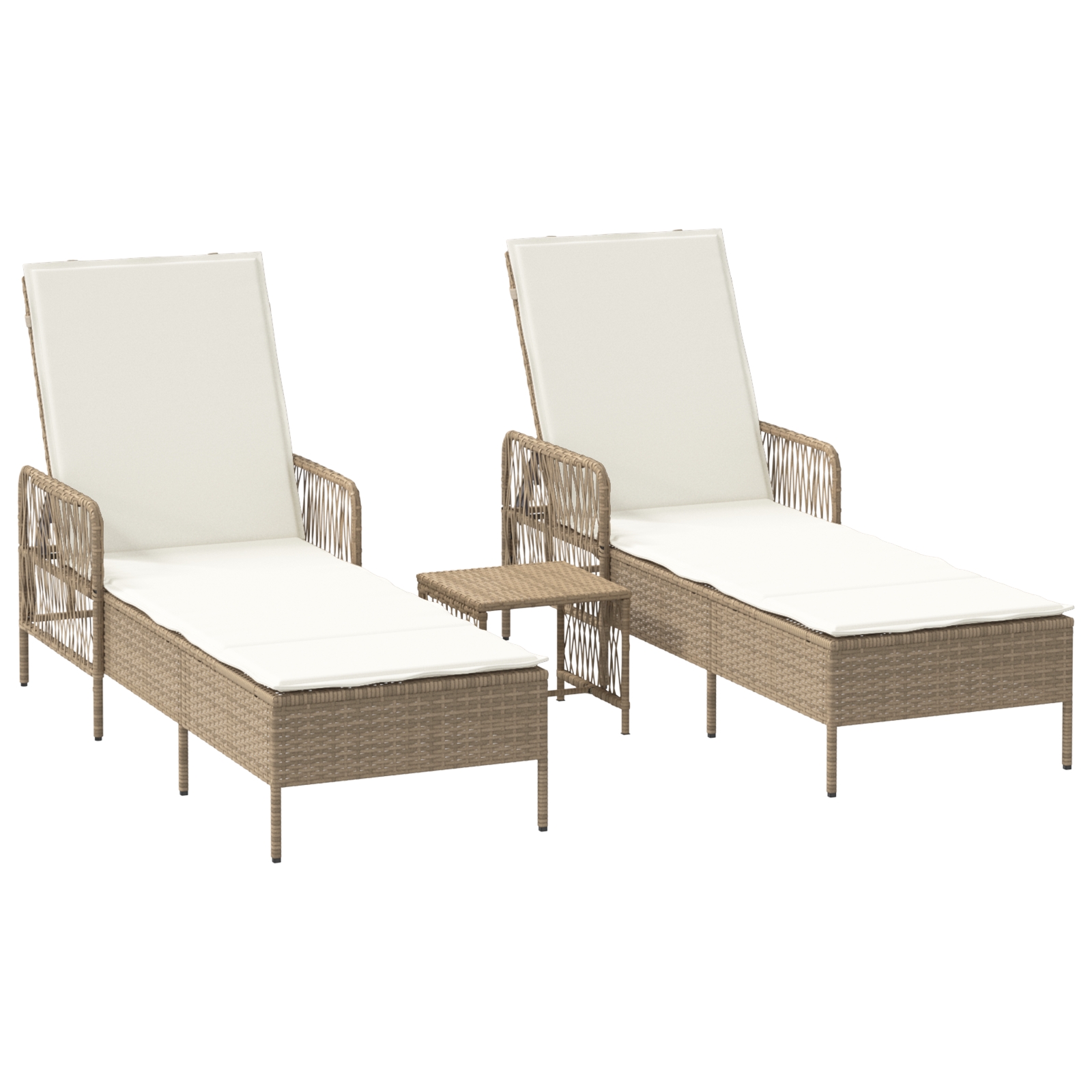 Șezlong cu pernă 2-persoană 2 pcs Bej 35 x 35 x 32cm poliratan