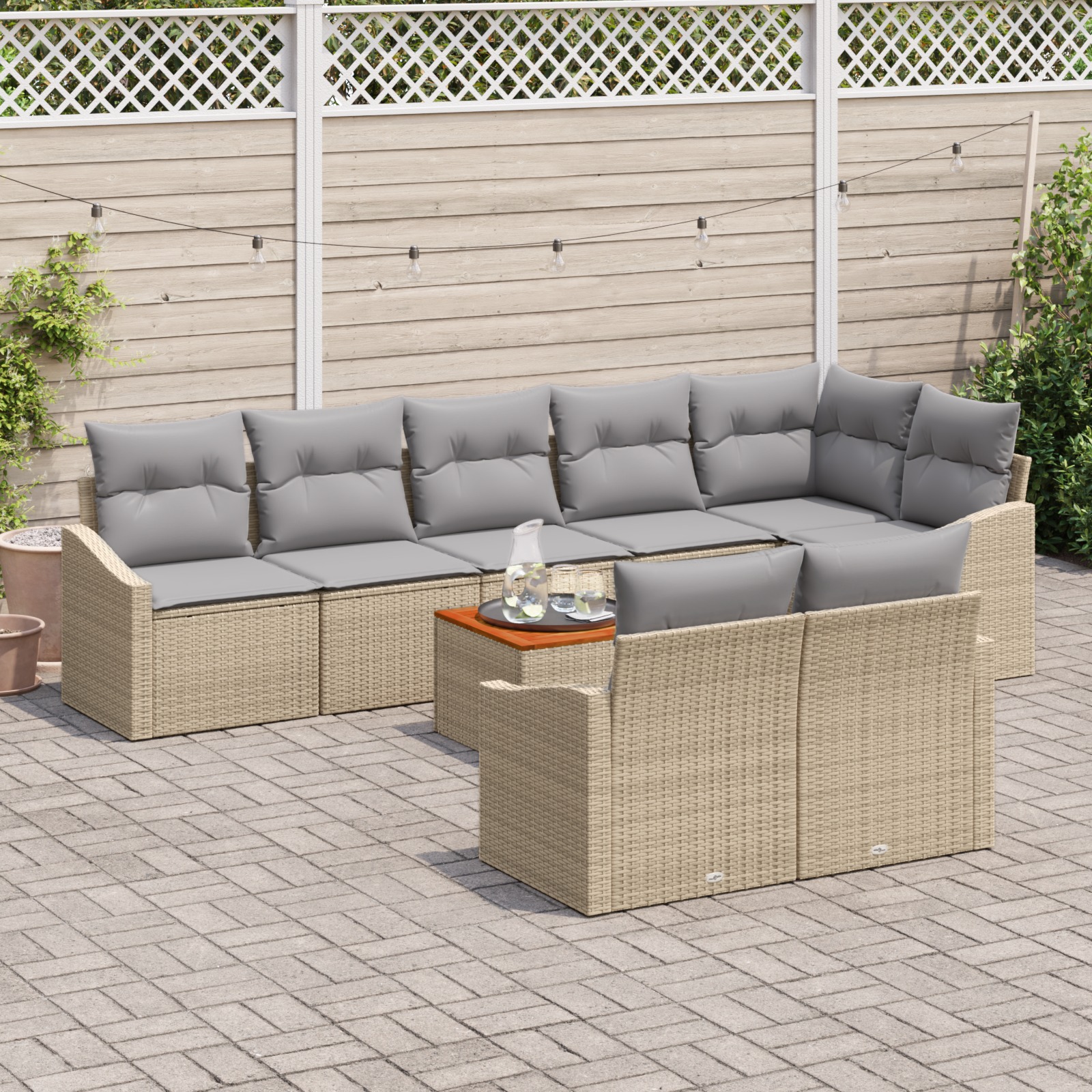Set de canapele pentru grădină cu pernă 9 pcs Bej Rattan poli