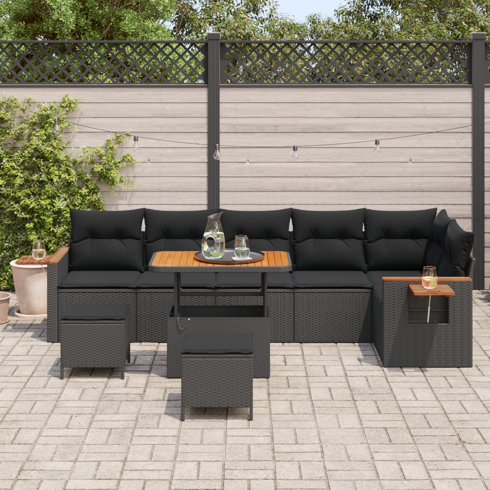 - Materiale rezistente: Setul ăsta de canapea e făcut din poliratan durabil și un cadru din oțel acoperit cu pulbere, aducând împreună puterea și stilul. Poliratanul are un look modern împletit, iar oțelul acoperit cu pulbere oferă stabilitate pe termen lung. Materialele astea sunt gândite să dureze, făcând din setul ăsta o alegere super bună pentru utilizarea în aer liber.