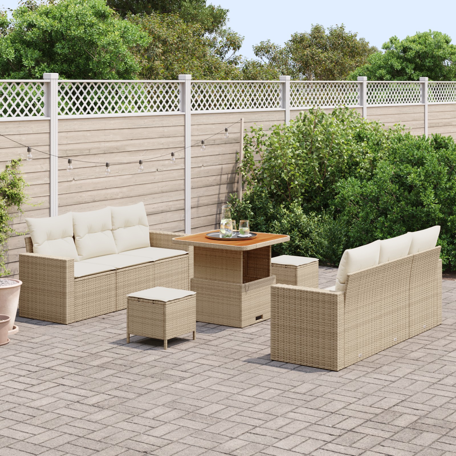 - Materiale de Înaltă Calitate Setul de canapele pentru grădină este construit dintr-un amestec durabil de poliratan și lemn masiv de acacia. Aceste materiale oferă o rezistență remarcabilă la intemperii, asigurând longevitate chiar și în expunerea la elementele exterioare. Suprafațele din lemn de acacia oferă un finisaj natural frumos, îmbunătățind atractivitatea estetică a oricărui cadru de grădină sau terasă.