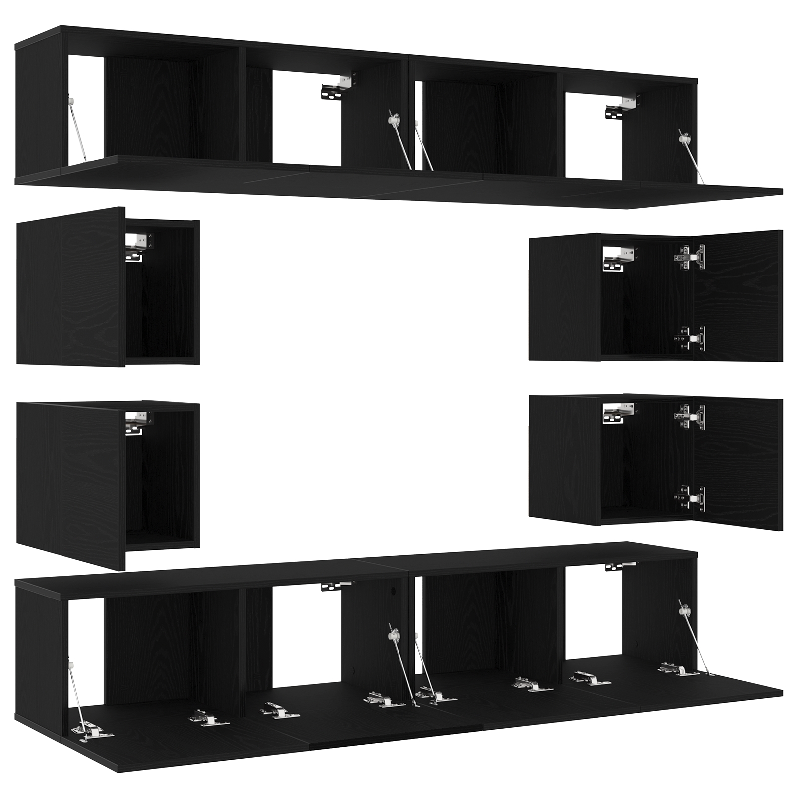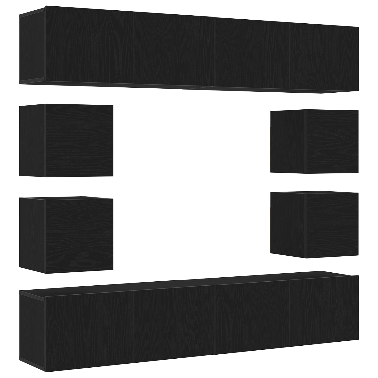 Set cabinet TV montat pe perete din lemn de stejar negru –