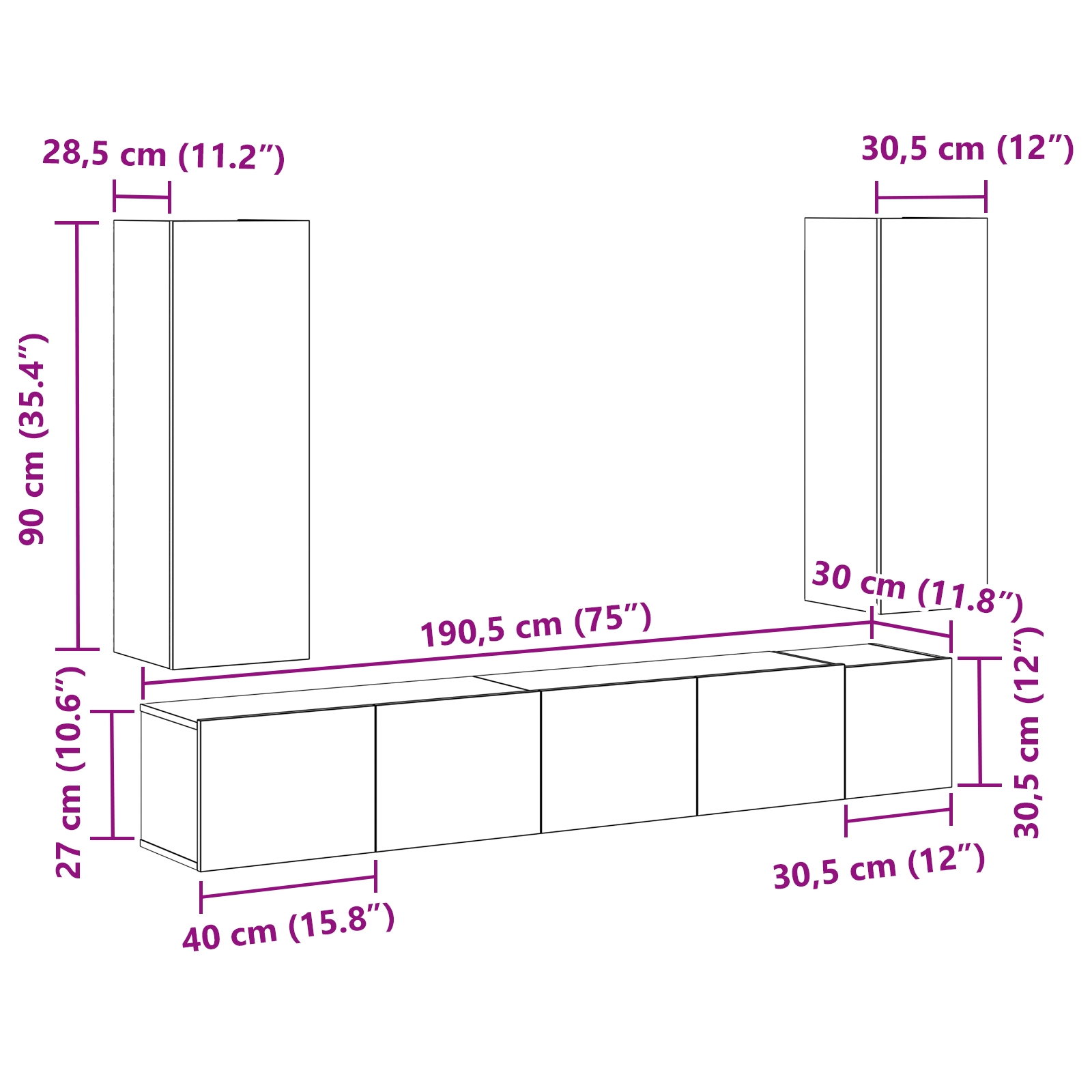 Îmbunătățește-ți livingul cu acest set cool de dulap TV montat pe perete. E făcut să se potrivească perfect în casa ta și oferă stocare practică. Finisajul elegant din stejar negru cu o suprafață texturată susține televizorul și expune decorul tău frumos.