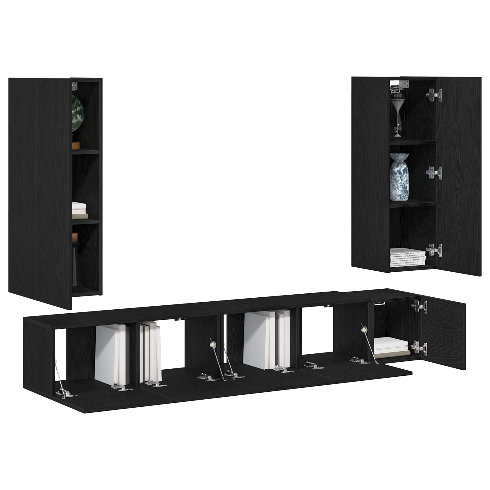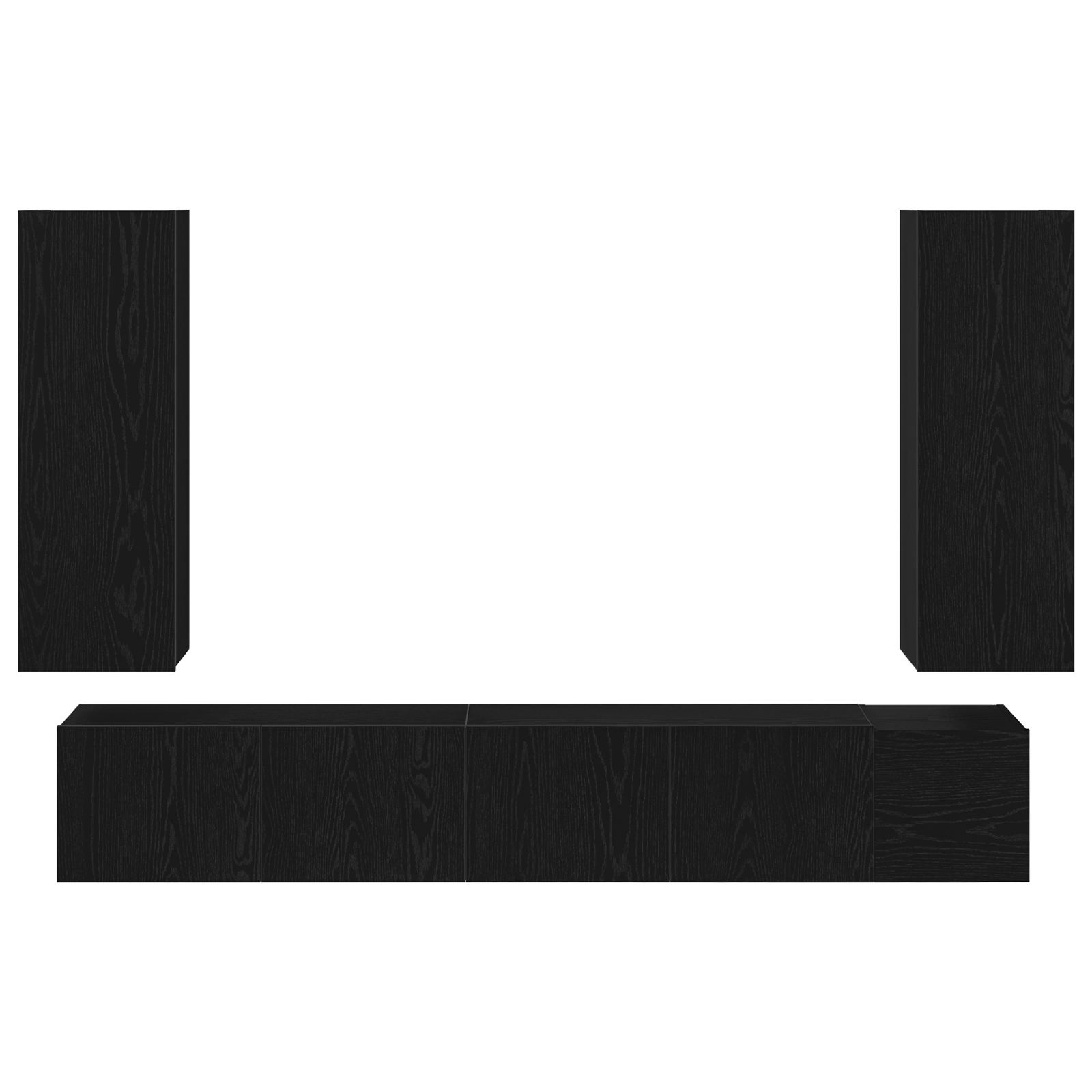 Set de dulap TV montat pe perete cu 5 piese din lemn de stejar negru