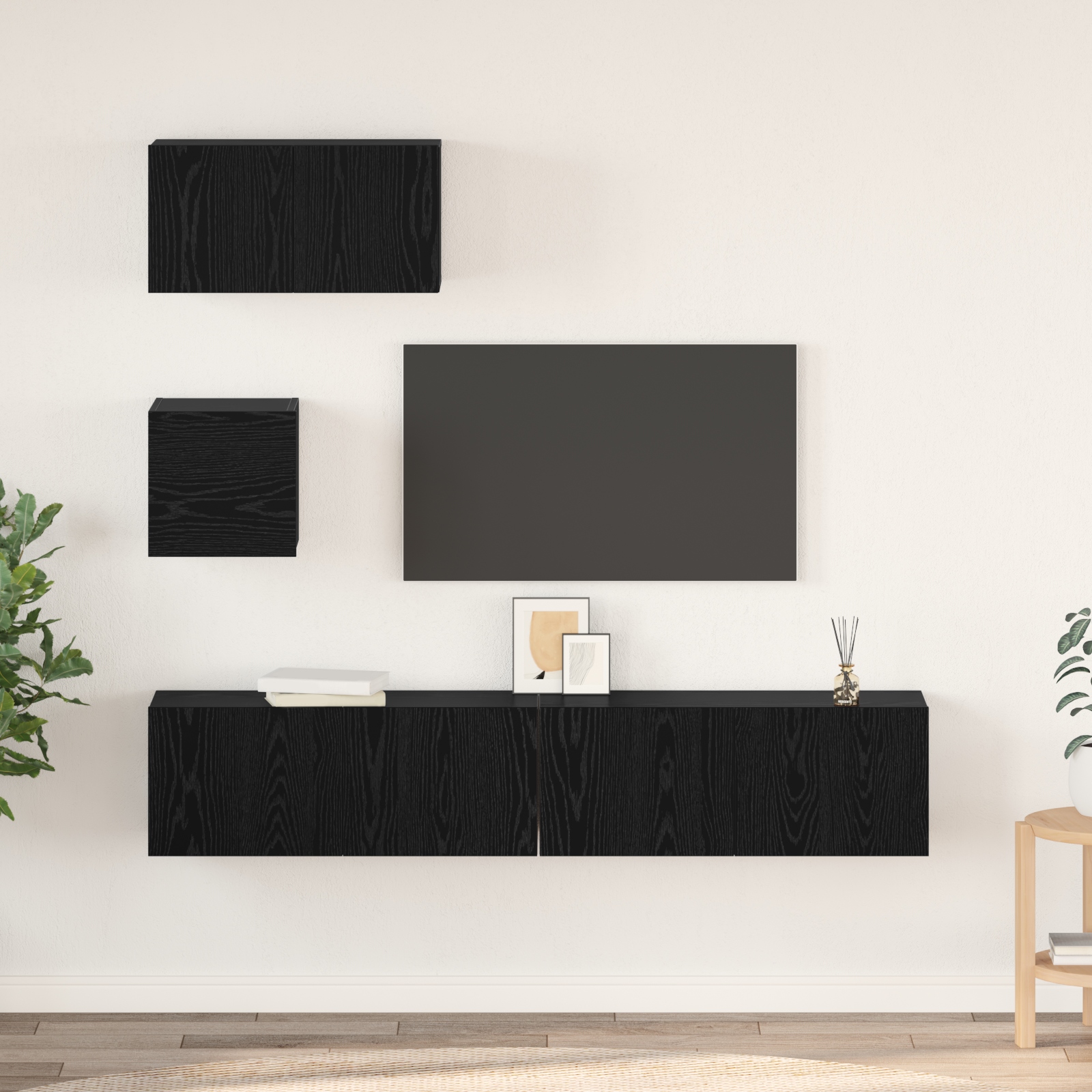 Set comodă TV 4 pcs Stejar negru 80 x 30 x 30 cm Lemn compozit