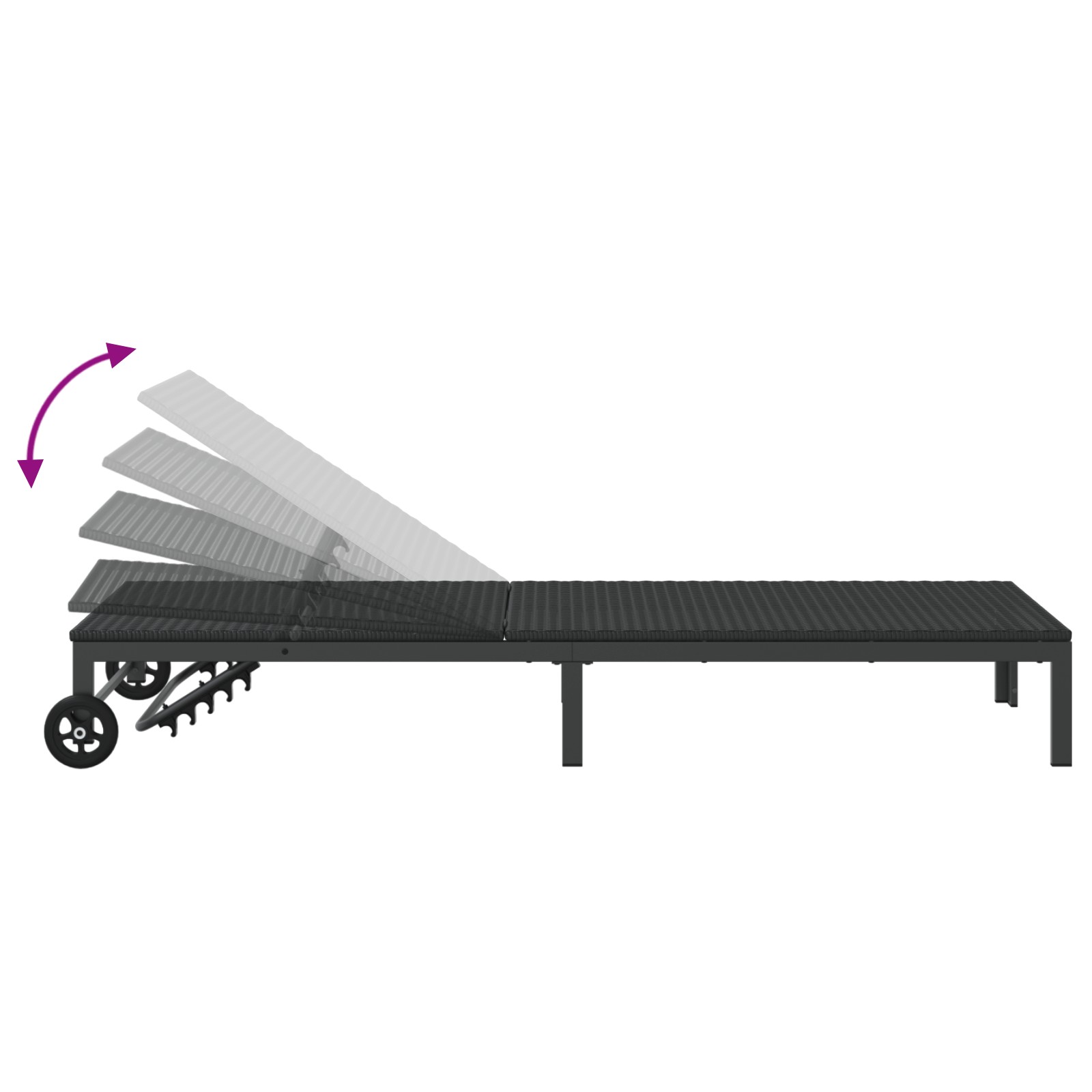 Șezlong 1-persoană Negru 60 x 200 x 27cm poliratan
