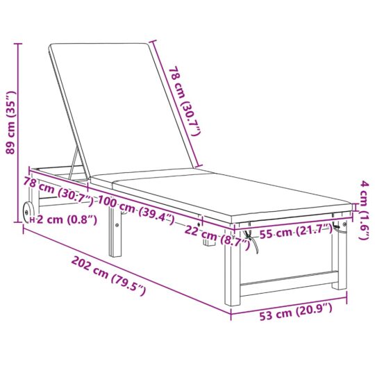 Șezlong 2 pcs Maro 53 x 202 x 89cm Lemn masiv de acacia