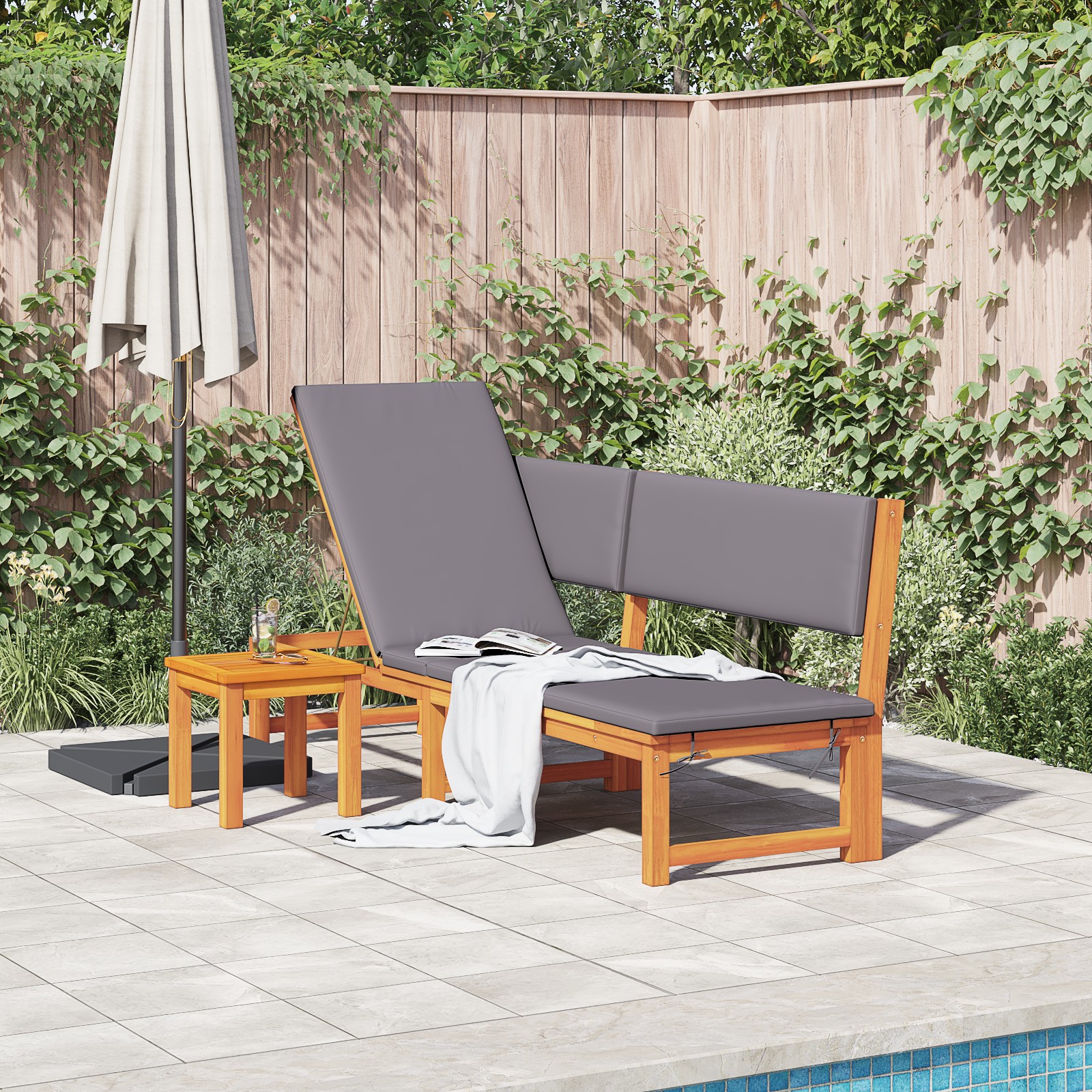 - Design funcțional: Șezlongul aduce un look modern cu utilitate practică. Cu picioare solide, oferă un pic de farmec rustic, în timp ce oferă suport stabil. Amestecul ăsta de stiluri moderne și clasice îl face să se integreze bine în diverse teme de grădină.
