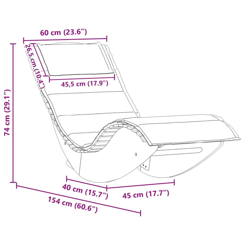 Șezlong balansoar cu pernă, lemn masiv de acacia