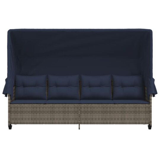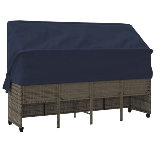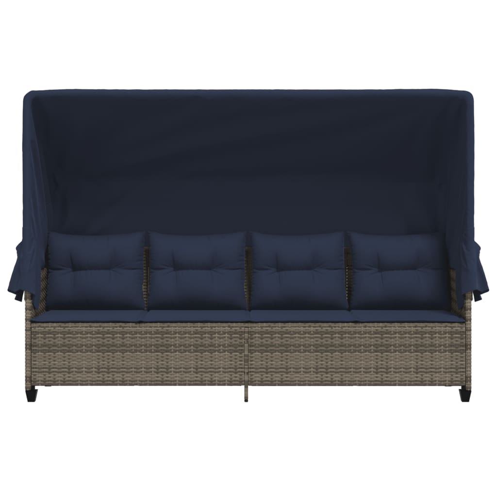 Șezlong cu baldachin și perne, gri, poliratan