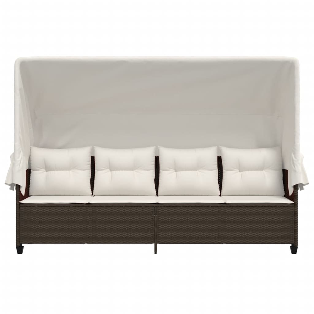 Șezlong cu baldachin și perne, maro, poliratan