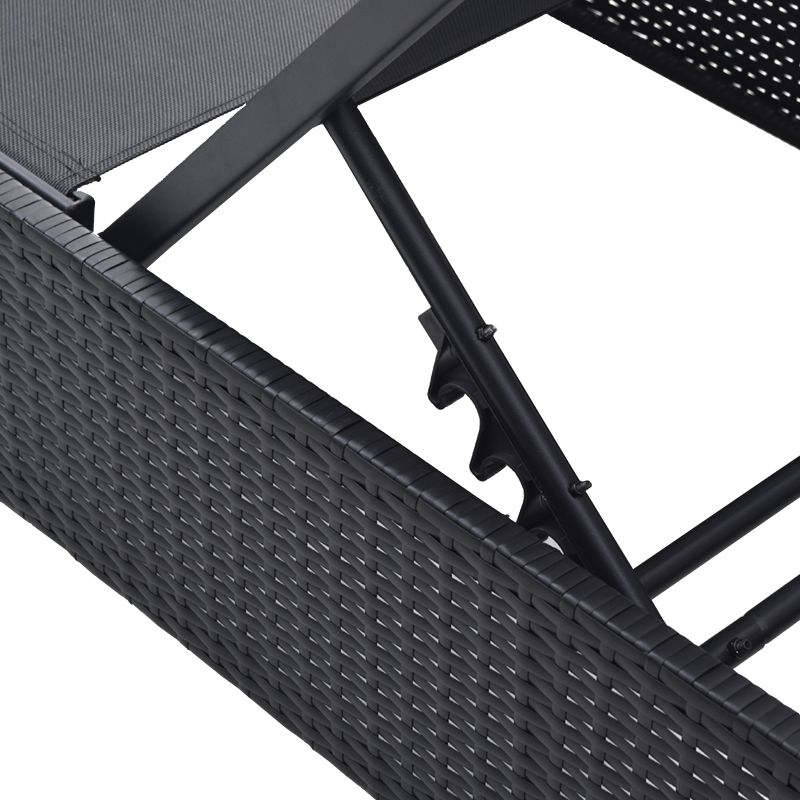 Șezlong cu pernă 1-persoană Negru 60 x 200 x 27cm poliratan
