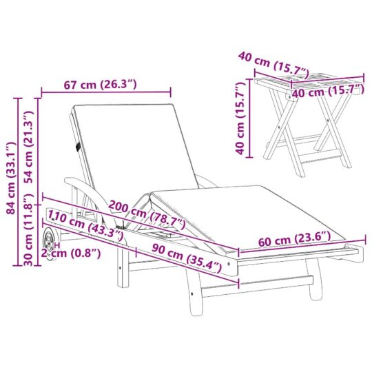 Șezlong cu pernă 3 pcs Bej 40 x 40 x 40cm Lemn masiv de acacia