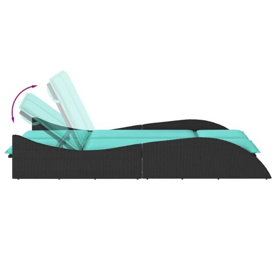 Șezlong cu perne, negru, 114x205x73 cm, poliratan
