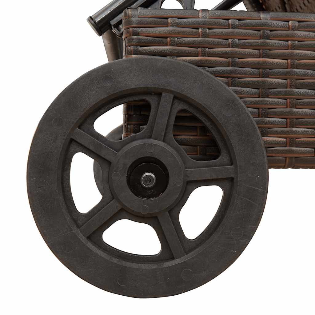 Șezlong de plajă cu roți și pernă, maro, poliratan