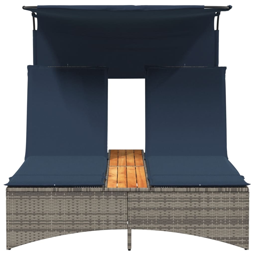 Șezlong dublu cu baldachin și perne, gri, poliratan