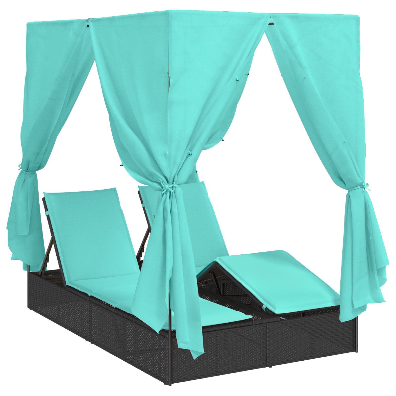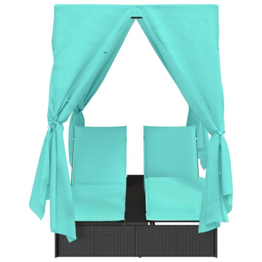 Șezlong dublu Set de 2 Negru și turcoaz